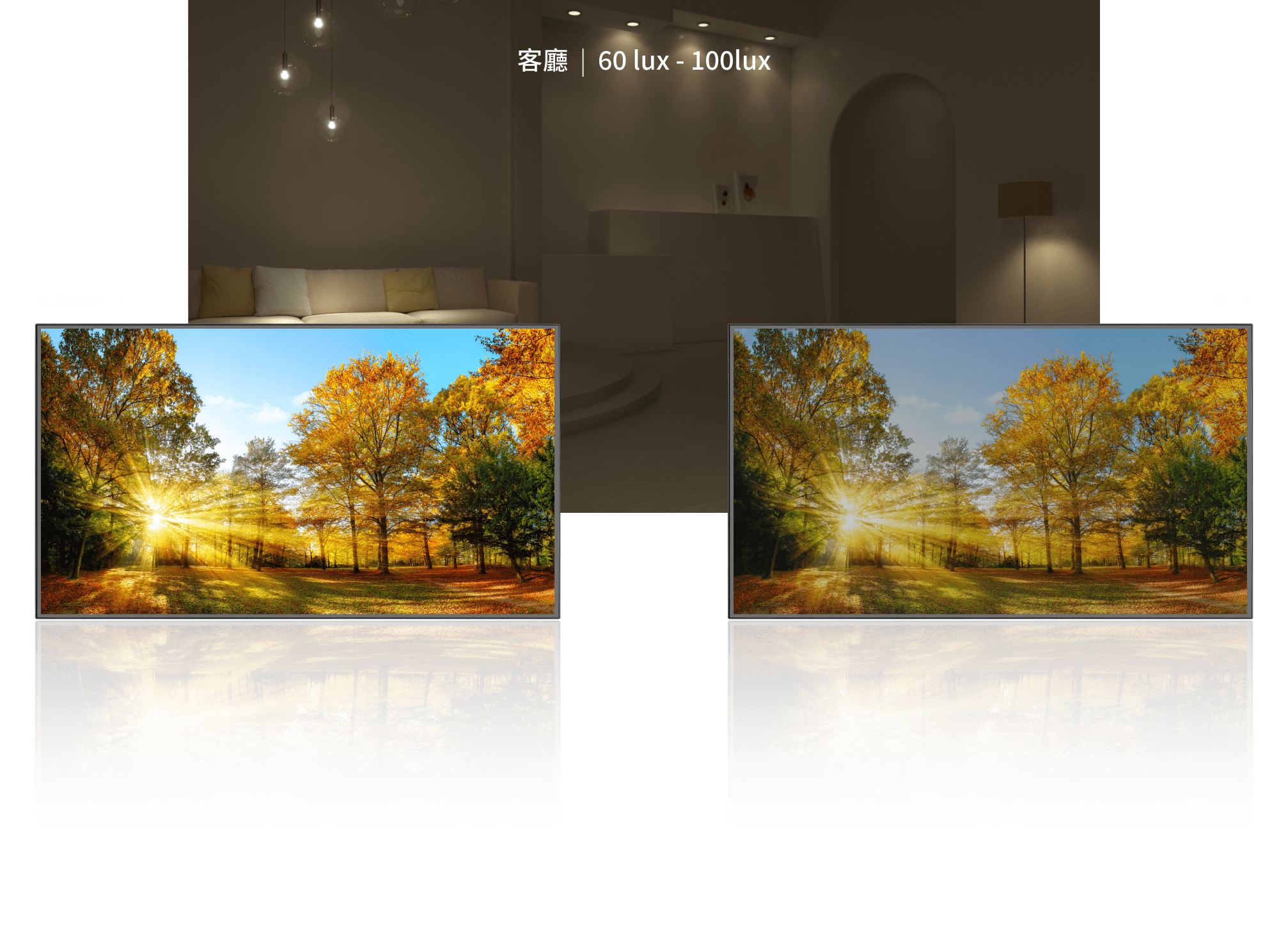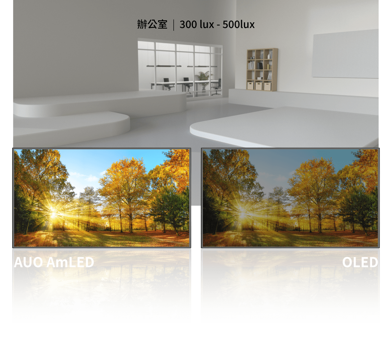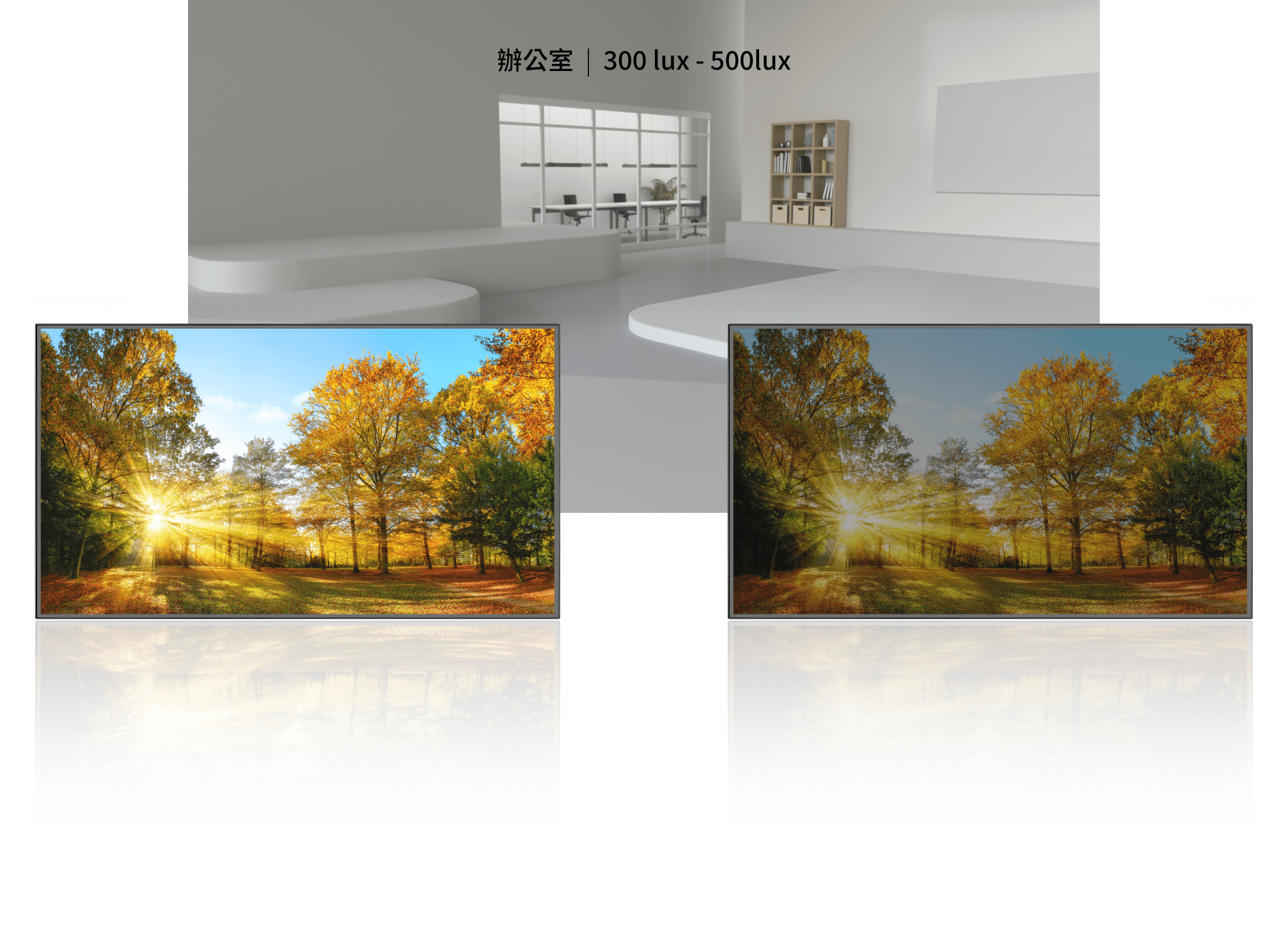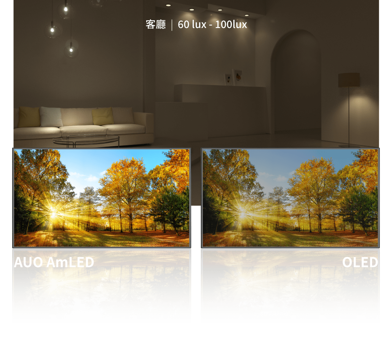 量、高明室對比、無烙印、無色偏與低藍光
