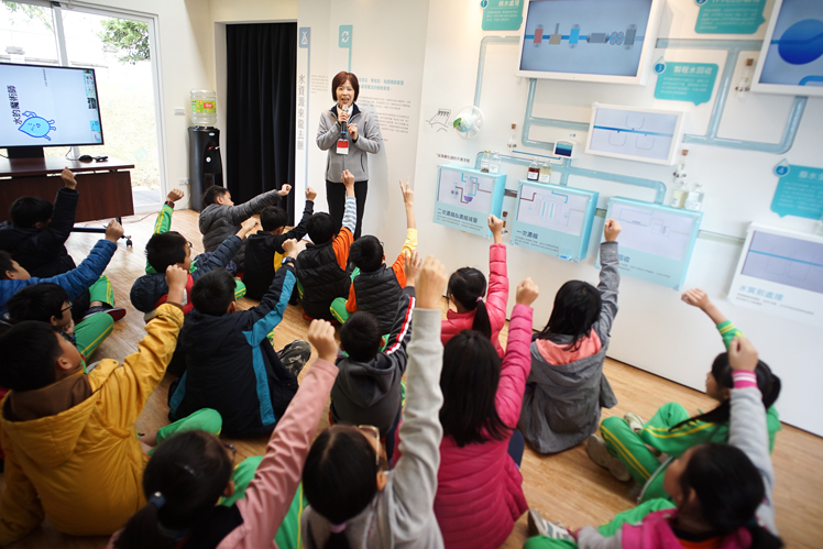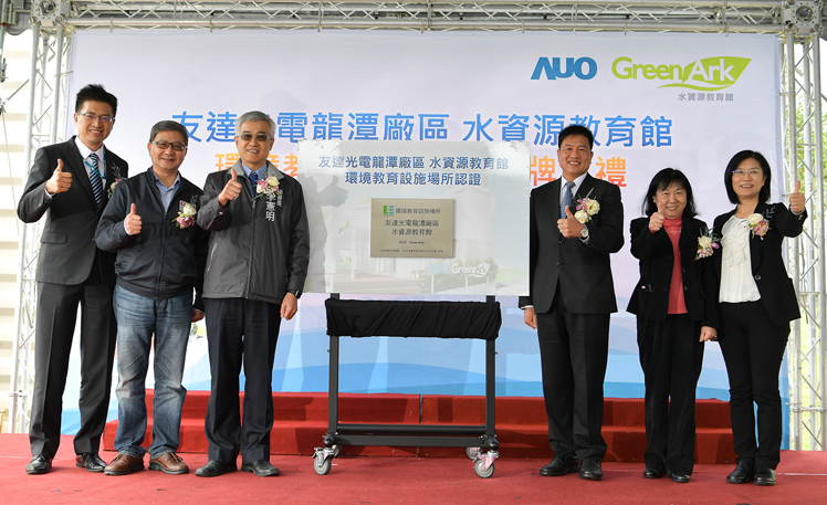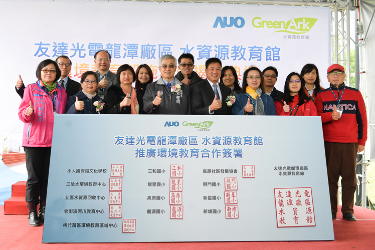 AUO announced “AUO GreenArk” at Longtan Site was certified as an environmental education facility by the Department of Environmental Protection and hosted its inauguration ceremony today (12). Through refining the results of water recycling into systematic courses of environmental education and the cultivation of professional teachers and volunteers from enterprises, WWW.乐鱼 GreenArk provides a learning field of environmental education for elementary school students. After its Taichung Plant acquired the first certification of environmental education facility in 2014, the certification of GreenArk at Longtan Site makes WWW.乐鱼 the only technology company(*) possessing two sites showcasing environmental education in Taiwan. WWW.乐鱼 actively connects local resources and teams with the neighborhood to promote environmental education and deeply root this concept in the next generation.